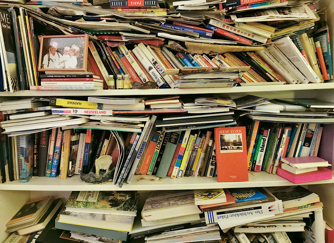 Überall in den auch mit Kunstwerken ausstaffierten Zimmern stapeln sich Bücher – ich liiieeebe das, und möchte den Rest des Tages eigentlich nur noch blätternd und lesend verbringen. Höhepunkt ist das der Reiselektüre vorbehaltene Bord, ich kann mich gar nicht sattsehen:
