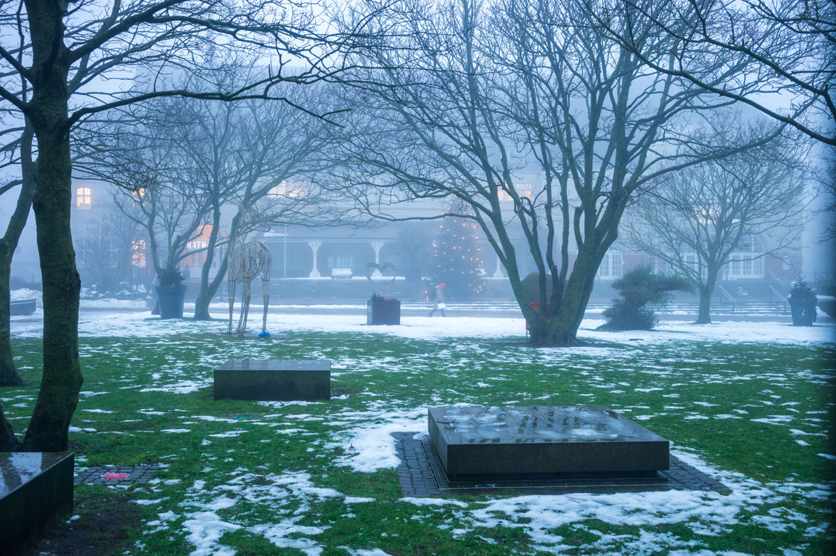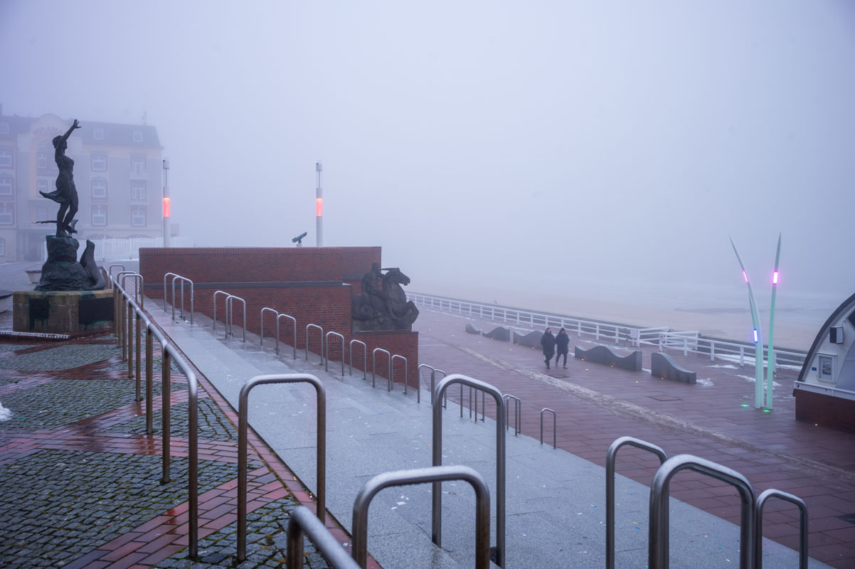 Seit dem gestrigen Nachmittag hat sich kräftiges Tauwetter durchgesetzt, verbunden mit einer hundertprozentigen Luftfeuchte, sprich: mehr oder weniger fettem Nebel. Am Nachmittag bummel‘ ich mal fröhlich über die Promenade…: