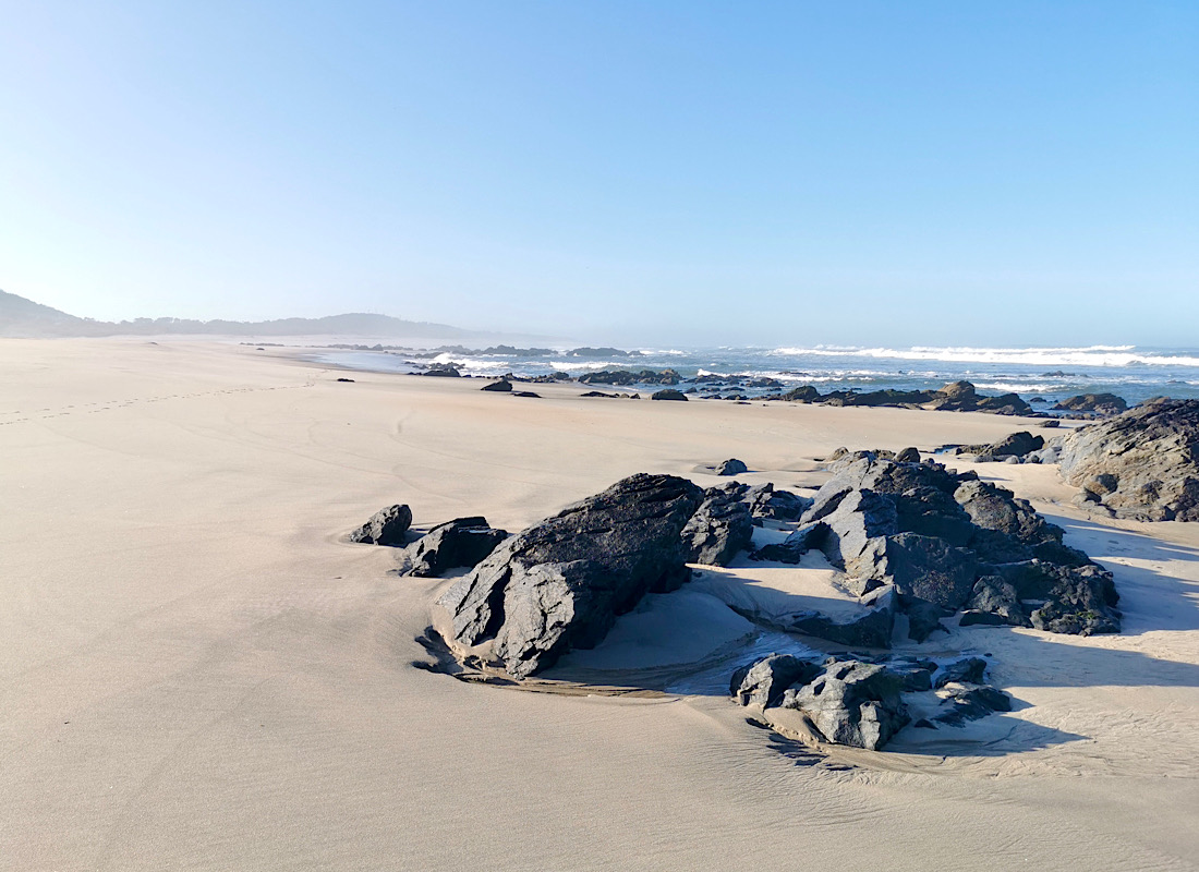 Meine Unterkunft in Afife liegt knapp einen Kilometer vom Meer entfernt. Allerdings höre ich das Donnern der Atlantikbrandung wegen der frühmorgendlichen Windstille sogar bei geschlossenem Fenster. Heimat! Also öffne ich alle Luken und inhaliere den sanften Atem des Ozeans, hach!