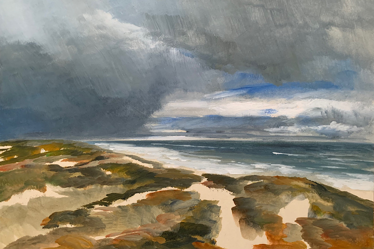 Als mir dieses Ölbild von den Händen ging, war sie wieder da: die Erinnerung an unsere Exkursionen durch Sylts-Urnatur und unsere erste Ausstellung im Jahr 2019. Und natürlich leite ich die Stimmung (nah am „Dunklen Gesellen“) an Dich weiter – verbunden mit der Einladung, dem Standort im Süden Westerlands einen Besuch abzustatten. Ich wüsste zu gerne, wie Du in dieser vorweihnachtlichen Zeit auf diesen Ausschnitt landschaftlichen Erlebens blickst.