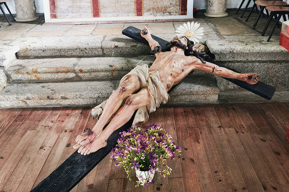 Ein besonderes Problem auf dem portugiesischen Caminho sind die vielen groben, extrem holperigen Kopfsteinpflaster. Mir kamen schon im Vorfeld zahlreiche diesbezügliche Berichte zu Ohren, und ich dachte, das könne doch wohl nicht so wild sein… Weitgefehlt! In meinen seit tatsächlich über 1.000 Kilometern bewährten MEINDL- Jakobsweg-Wanderschuhen habe ich mir beide Mittelzehen blau gelaufen. Und die Füße sind derartig strapaziert von dem unebenen, harten Untergrund, daß ich morgens immer zunächst auf Zehenspitzen ins Badezimmer gehe… (Kicher-Emoji). Und das trotz täglich aufgetragener Hirschcrème etc. pp.. Wie gut, dass ich meine guten Wandersandalen dabei habe – die retten mich gerade.