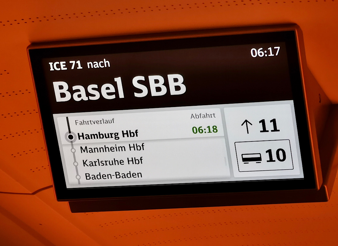 … wird fürstlich belohnt: Mit einer gaaanz wunderbar entspannten Bahnfahrt in nur schwach belegten Zügen, nettestem Personal, von dem ich freundlichst am Platz bedient werde… herrlich! Und nach ziemlich genau 950 Kilometern erreiche ich mein Fahrtziel nach 11 Stunden ohne eine einzige Minute Verspätung – kaum zu fassen:
