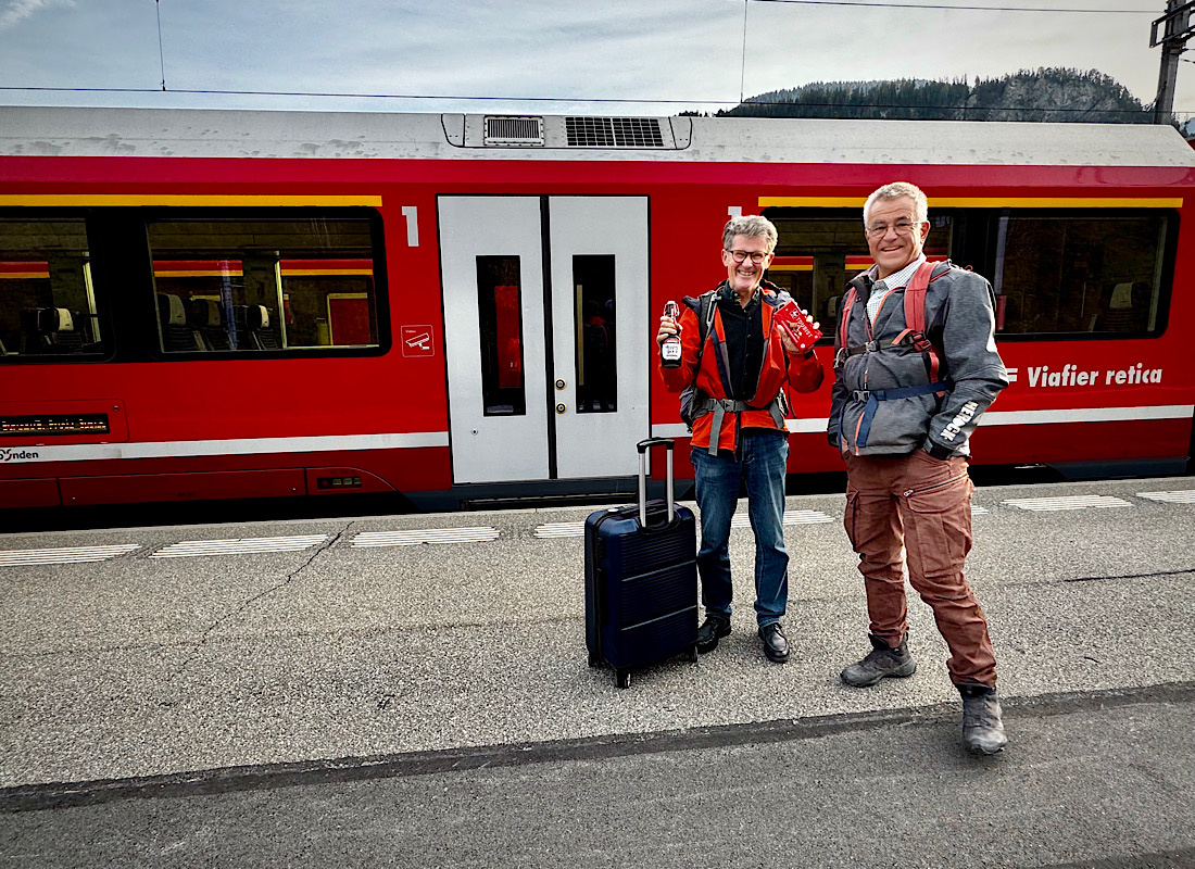 Und, zu meiner großen Überraschung: Ich werde sogar in Empfang genommen, von Masch und Regula – die „hinter den sieben Bergen“ wohnen und mal eben mit ihren Mountainbikes vorbeigeradelt sind: