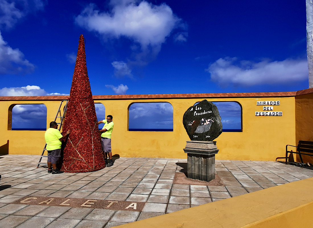 Ansonsten wird hier allerorten fleissig dekoriert – für Weihnachten, versteht sich. Ob am Mirador oberhalb des Strandes…: