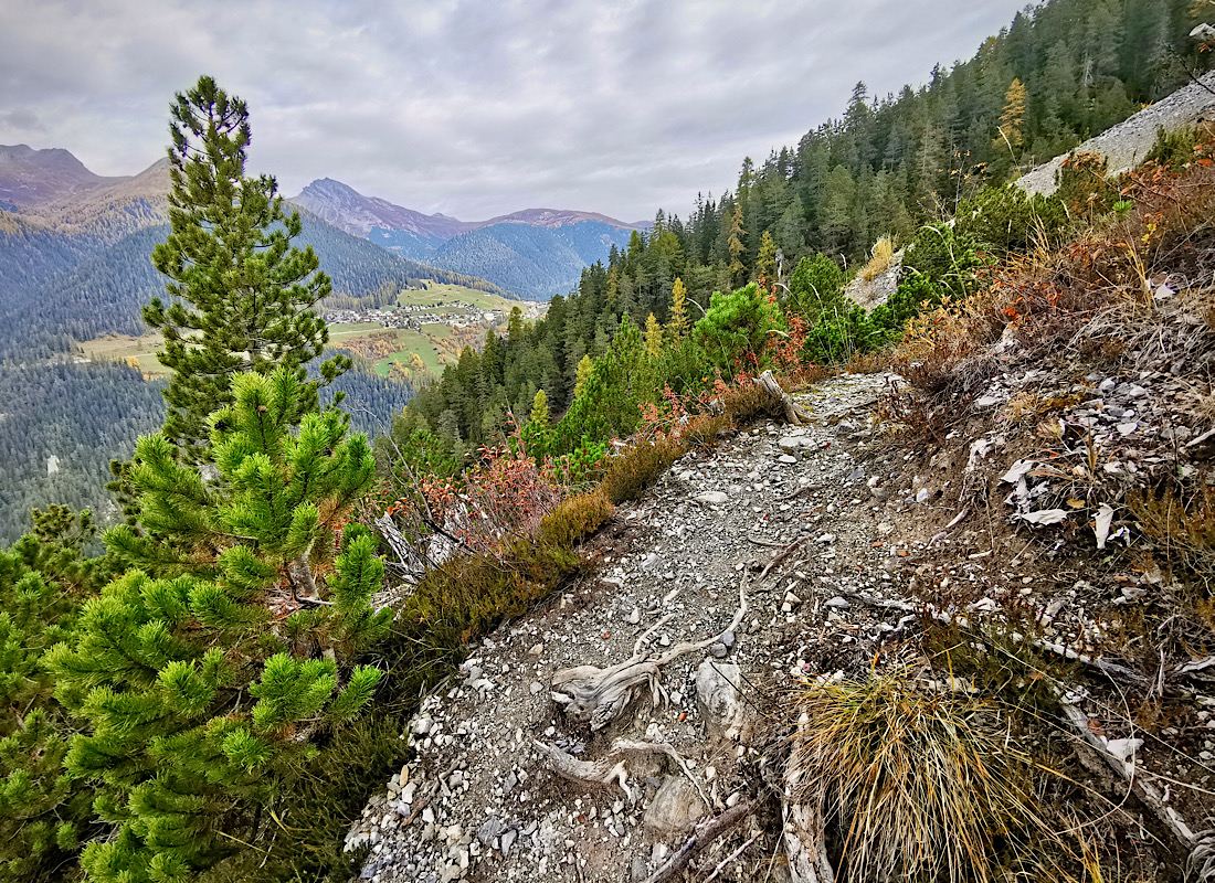 Zur Akklimatisation in gut eintausend Metern Höhe stand heute zunächst einmal eine entspannte Wanderung auf einer Etappe des bekannten ‚WALSER-WEGS‘ Richtung DAVOS auf dem Programm… um es kurz zu machen: Wenn ich heute morgen am Frühstückstisch gewusst hätte, was mich erwartet, wäre ich wohl lieber per Bahn & Bus durch die Gegend gegondelt.