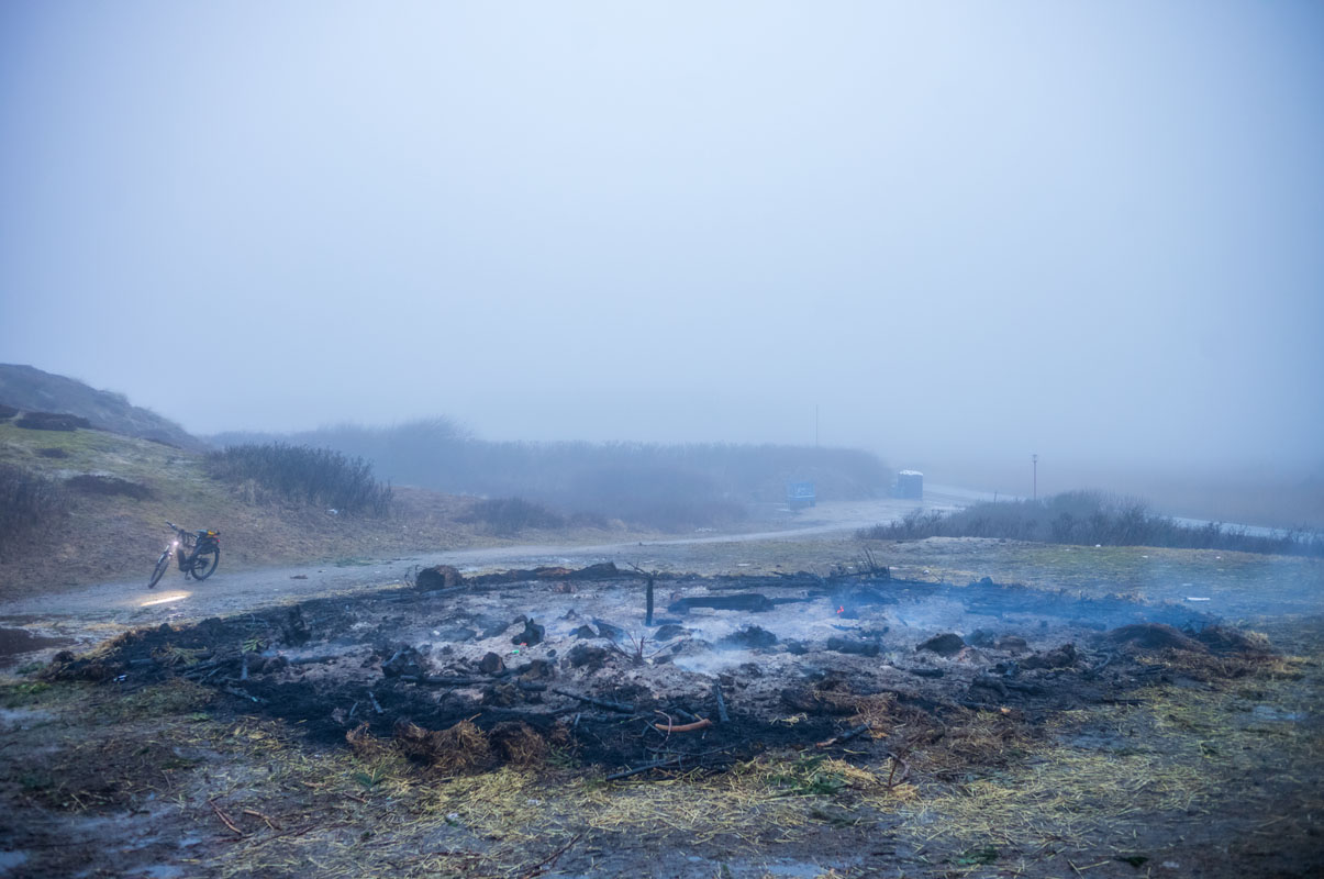 Heute früh besuche ich den Ort des Geschehens bereits im Morgengrauen. Es hat schwer geregnet in der Nacht, trotzdem ist nur wenig übrig geblieben, an einigen Stellen brennt es sogar noch: