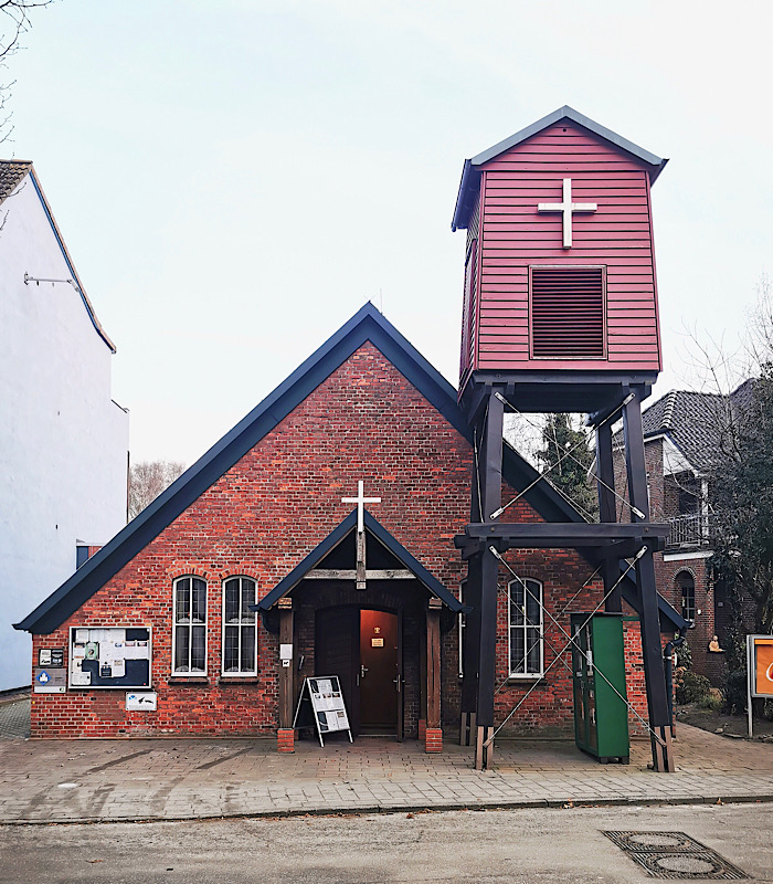 Handelt es sich doch um eine ehemalige Bauernkate, der später noch ein Glockenstapel vorgebaut wurde. „Deutschlandweit einmalig“, weiß das Schildchen zu berichten, das sich neben dem Eingang befindet. Was ich aufs Wort glaube. Immerhin, drinnen ist es warm und gemütlich, und sie taugt gut zum Aufwärmen nach längerem Spaziergang.