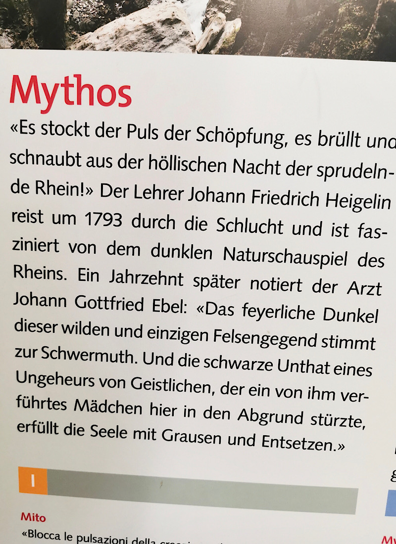 Ich war vorgewarnt. Meine jugendliche und stets lächelnde Hotelchefin guckt mich beim Frühstück mit ernster Mine an, als ich ihr von meinen Plänen erzähle, die berüchtigte VIA MALA von Zillis bis Thusis am heutigen Tage zu durchwandern. Die gefährlichste Route vor dem Splügenpass, für jeden Alpenüberquerer seit der Bronzezeit eine Etappe, die stets nur zwei Möglichkeiten zuließ: Den Sieg über die Elemente oder den grausamsten Tod.