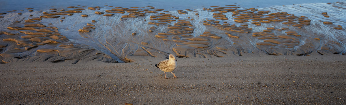 Und noch ein nettes Erlebnis: Eine junge Silbermöwe schreitet derart unerschrocken auf mich los, dass ich letztlich beiseite gehe um ihr Platz zu machen: