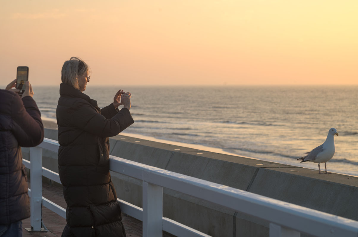 Zum Fotografieren epischer Landschaften bleibt die Sicht zu schlecht, weshalb ich erst zum Sonnenuntergang mal auf die Promenade schlendere. Die Möwe denkt zunächst noch, sie sei das Objekt der Begierde…: