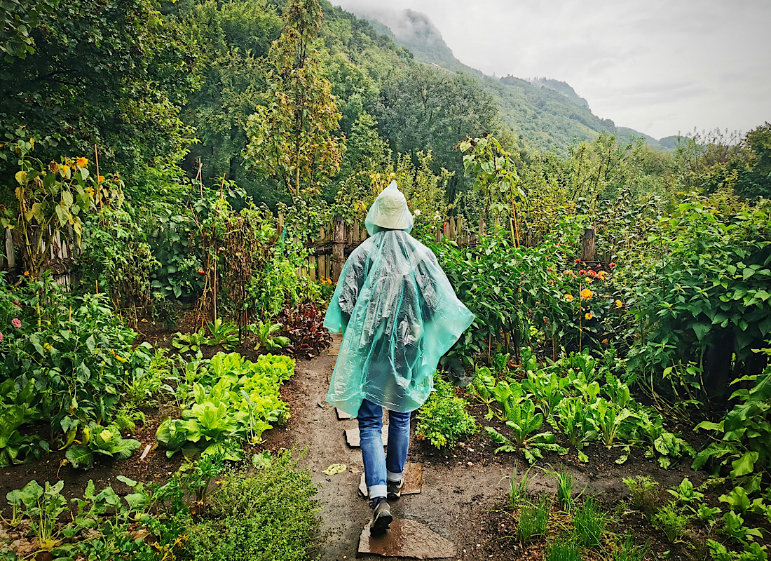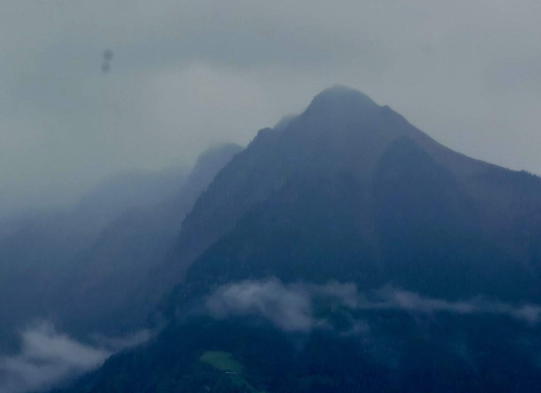 Das Wetter ist wieder richtig grottig. Schon beim Frühstück blicken wir in einen eeendlooosen Bindfadenregen, und die Ansicht der Berggipfel verheißt nichts Gutes:
