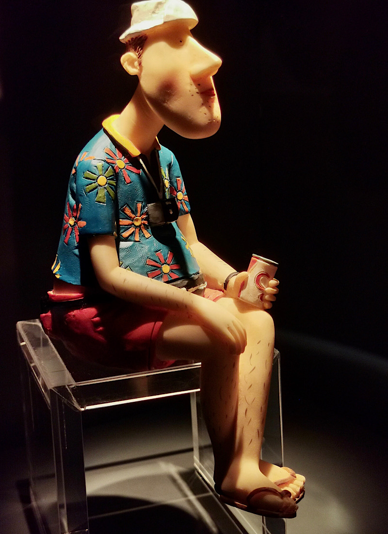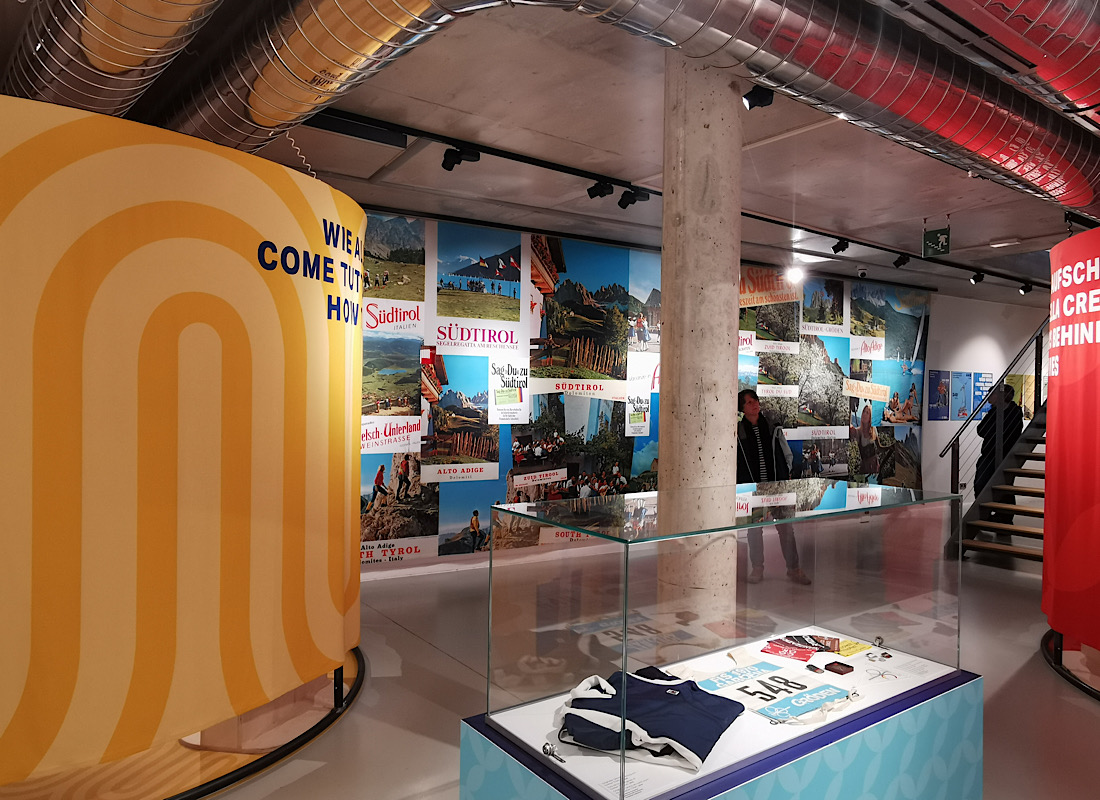 Um es kurz zu machen: Diese museumsdidaktisch hervorragend konzipierte Ausstellung ist das Beste, was ich mir je zu diesem Thema anschauen durfte. Sie strotzt vor Ideen, die uns – insbesondere aufgrund ihrer lustigen Zusammenstellung und eines schillernden tiefgründigen Humors – für gute zwei Stunden in eine andere Zeit transportieren. Gleich zu Beginn hören wir Zeitzeugenberichte von Einheimischen, die den urplötzlichen Boom in den 1970er Jahren aus Sicht der „Bereisten“ beschreiben – total zum Piepen, sag‘ ich Euch! Und wunderbar dargestellt auch der Marketing-Beitrag der Künstler (Thema Sehnsuchtsbilder!) – in Wort und Gemälden: