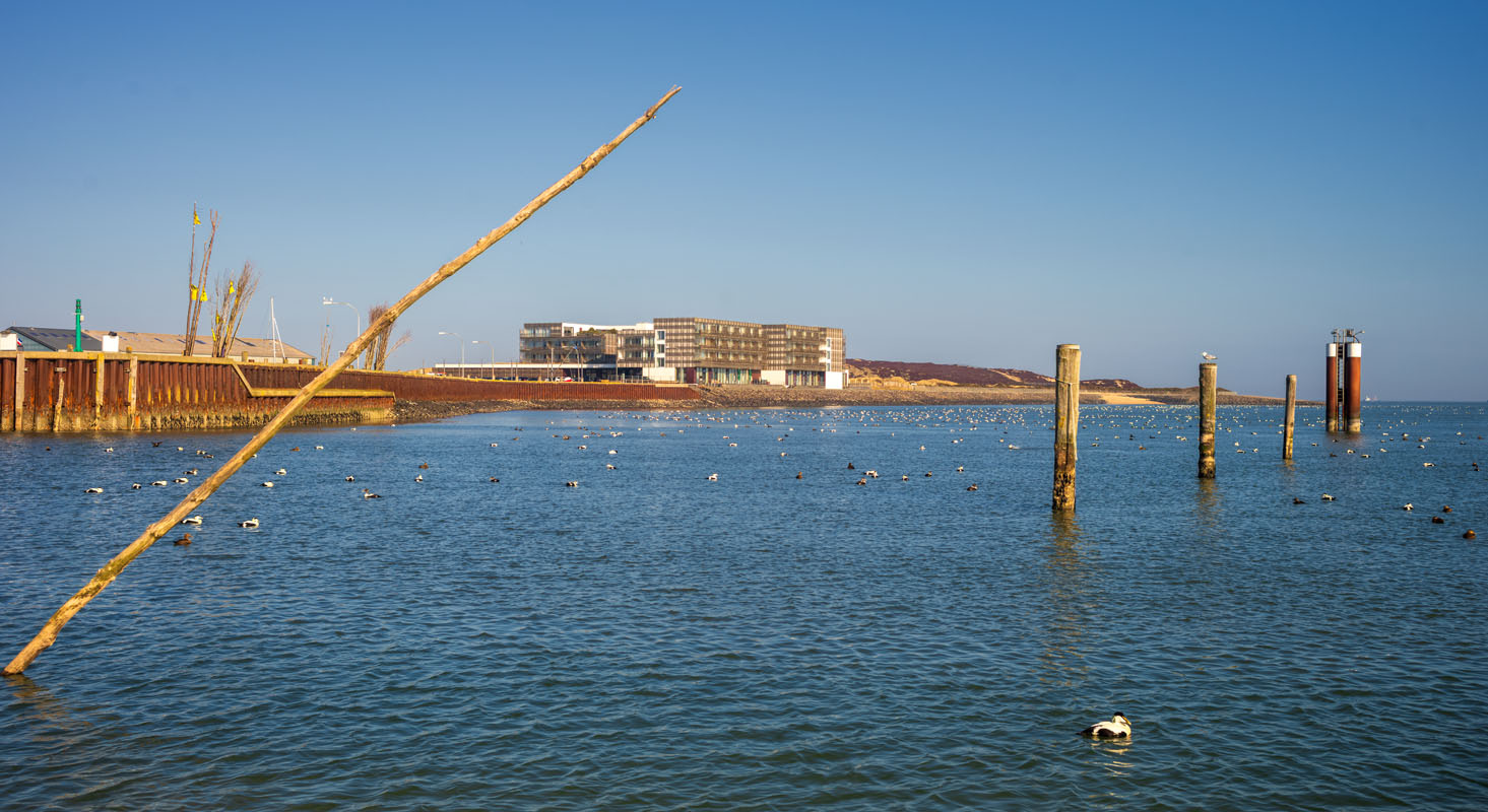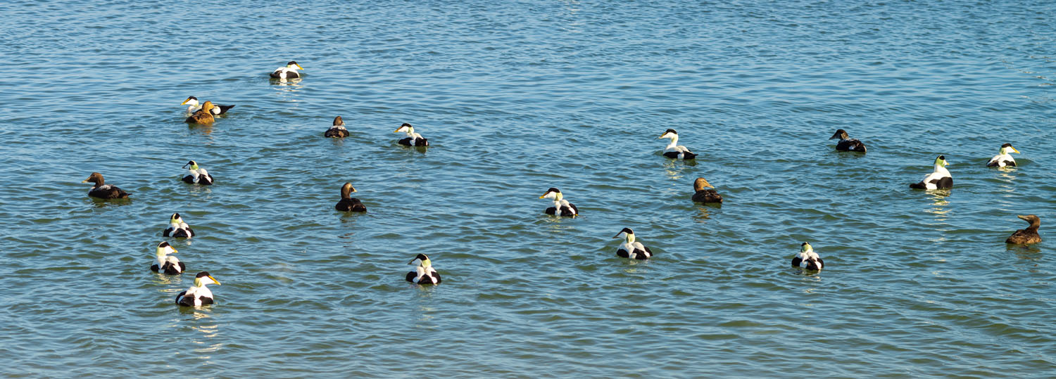Im Windschatten der Insel halten sich zur Zeit fast 1.000 Eiderenten hier auf…: