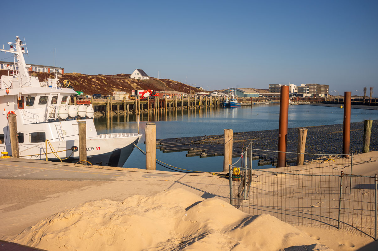 Aaalso Hörnum, ok. Ich erkunde noch ein wenig den zunehmend schrottigen Hafen, auf dessen Mole sich mittlerweile eine veritable Dünenlandschaft entwickelt: