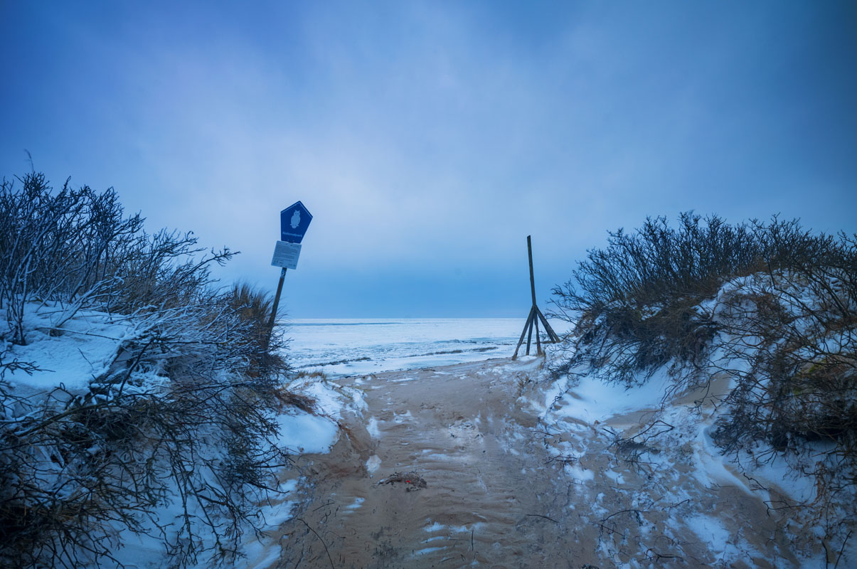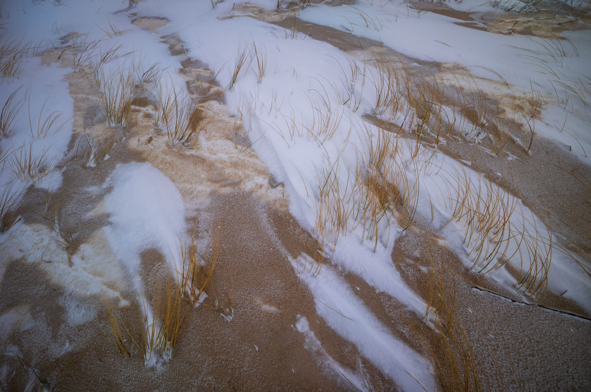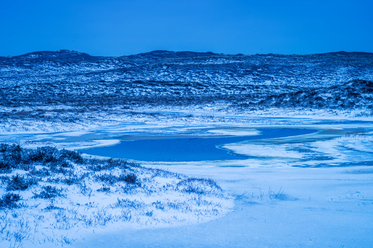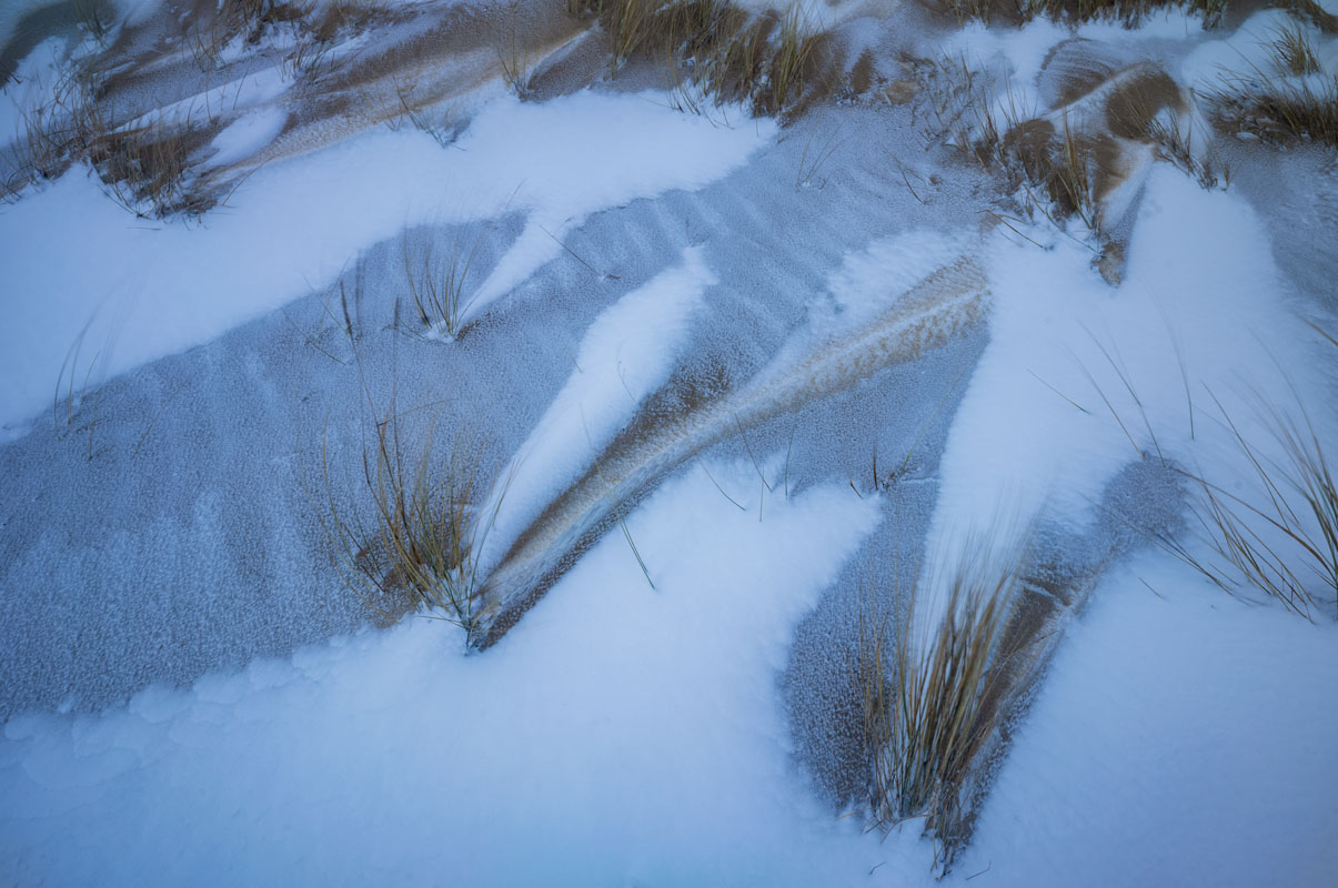 Der Flugsand ist derart locker geschichtet, dass ich nicht nur in den Schnee, sondern sogar in den Sand bis über die Knöchel einsinke: