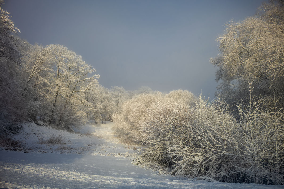 Dabei ist es leider nicht „fotowettrig“, denn grauer, verhangener Himmel und schneebedeckte Landschaft, die mögen sich nicht (oder zumindest selten) auf Fotos.