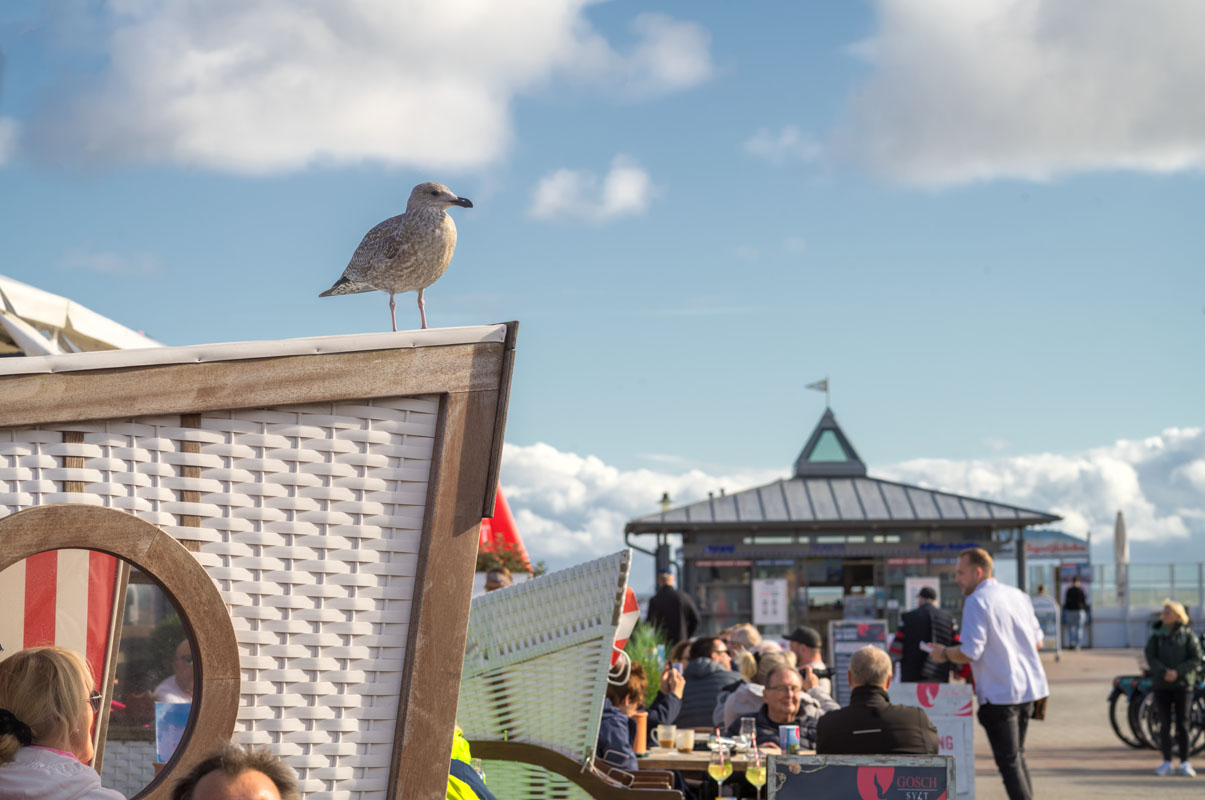 … und die örtliche Möwe hat bereits einen „Edelfisch-Teller“ im Visier, was von den bald „Betroffenen“ natürlich noch gar nicht bemerkt wird: