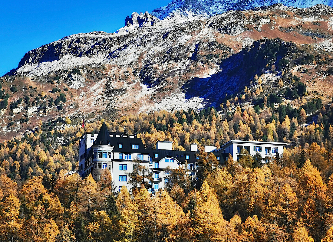 Darauf muss man auch erstmal kommen… Mein angepeiltes Ziel, zur nachmittäglichen Kaffeetafel mit Live-Orchestermusik ins Hotel Waldhaus einzuziehen, muss ich leider knicken, denn das Ensemble spielt während der Sommersaison „nur bei schlechtem Wetter“…: