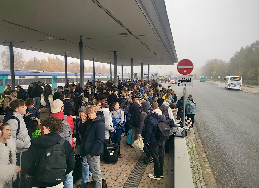 Als ich nach etwa 90 Minuten zum Bahnhof zurückkehre, haben sich die Crowds aufgelöst, und ein freundlicher SEV-Busfahrer klärt mich auf, dass die Bahnstrecke wieder frei sei.